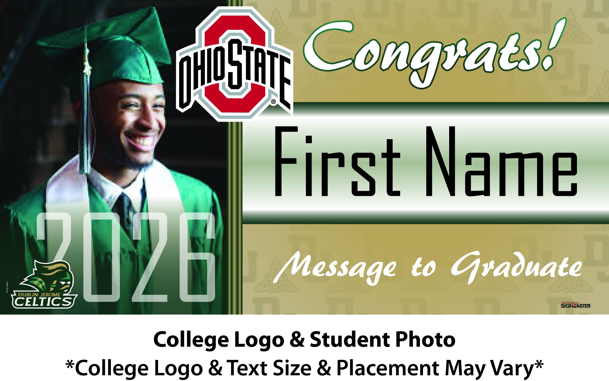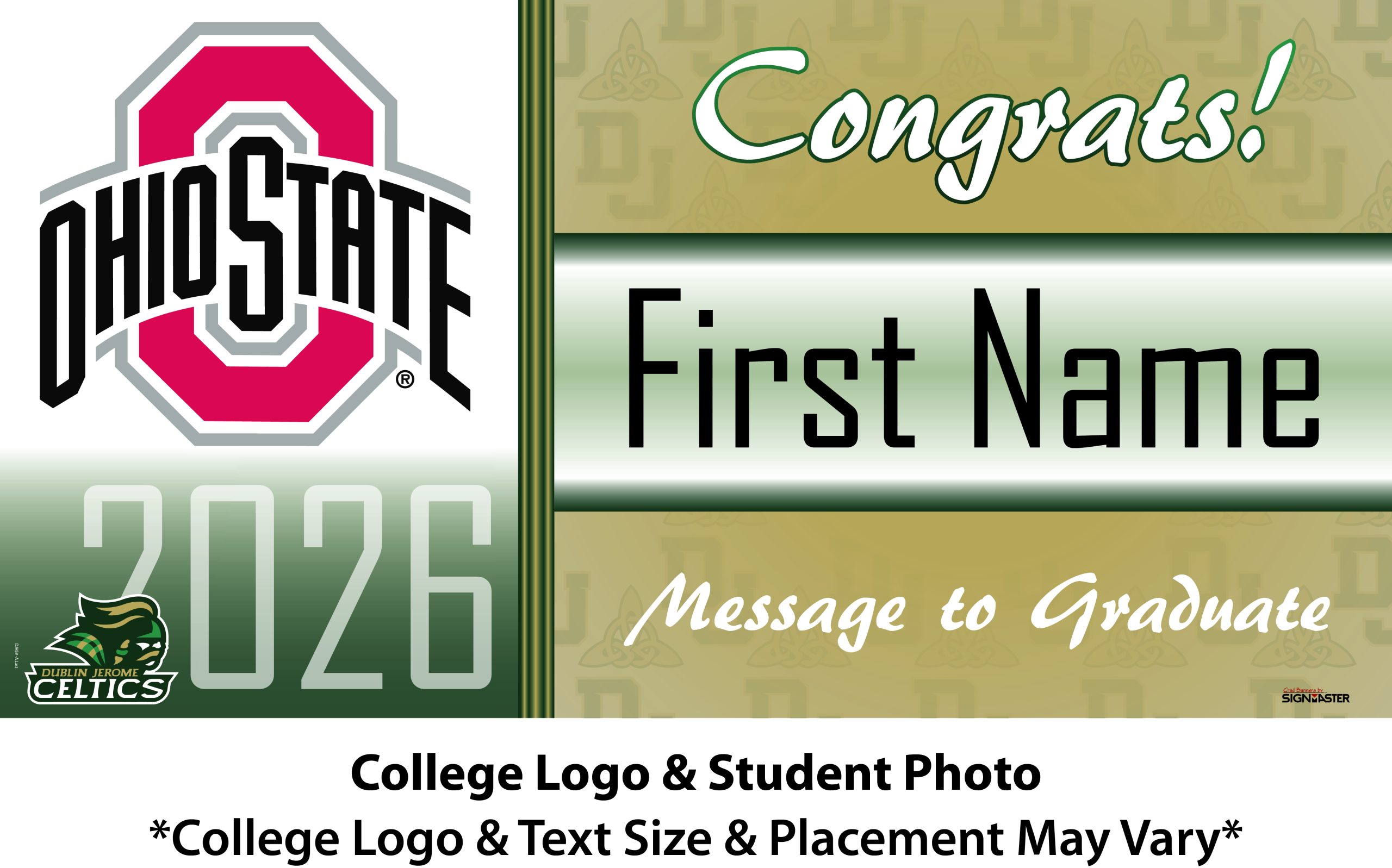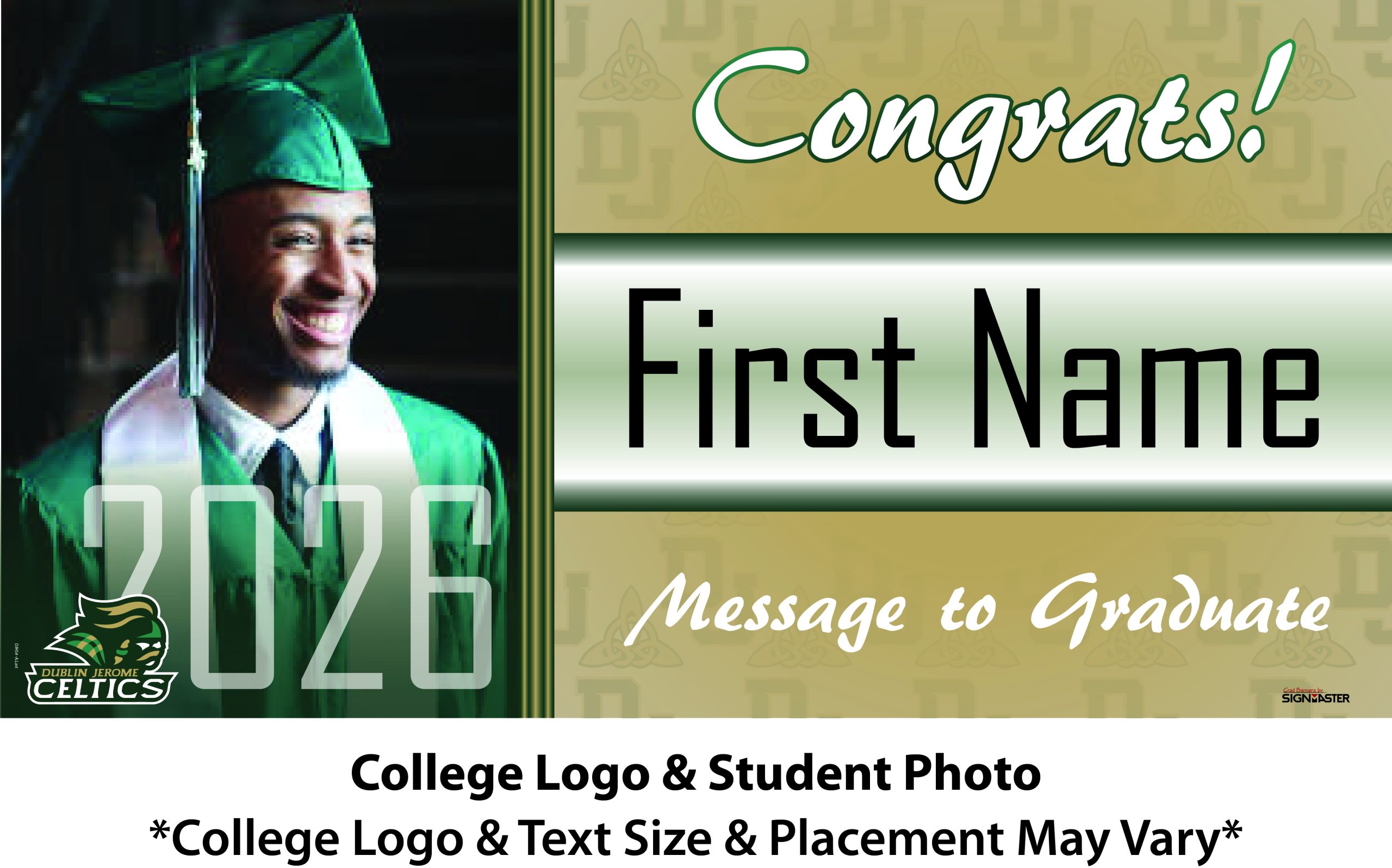 Banner Size: 5 ft. wide x 2.5 ft high (approximately 62 in x 32 in)