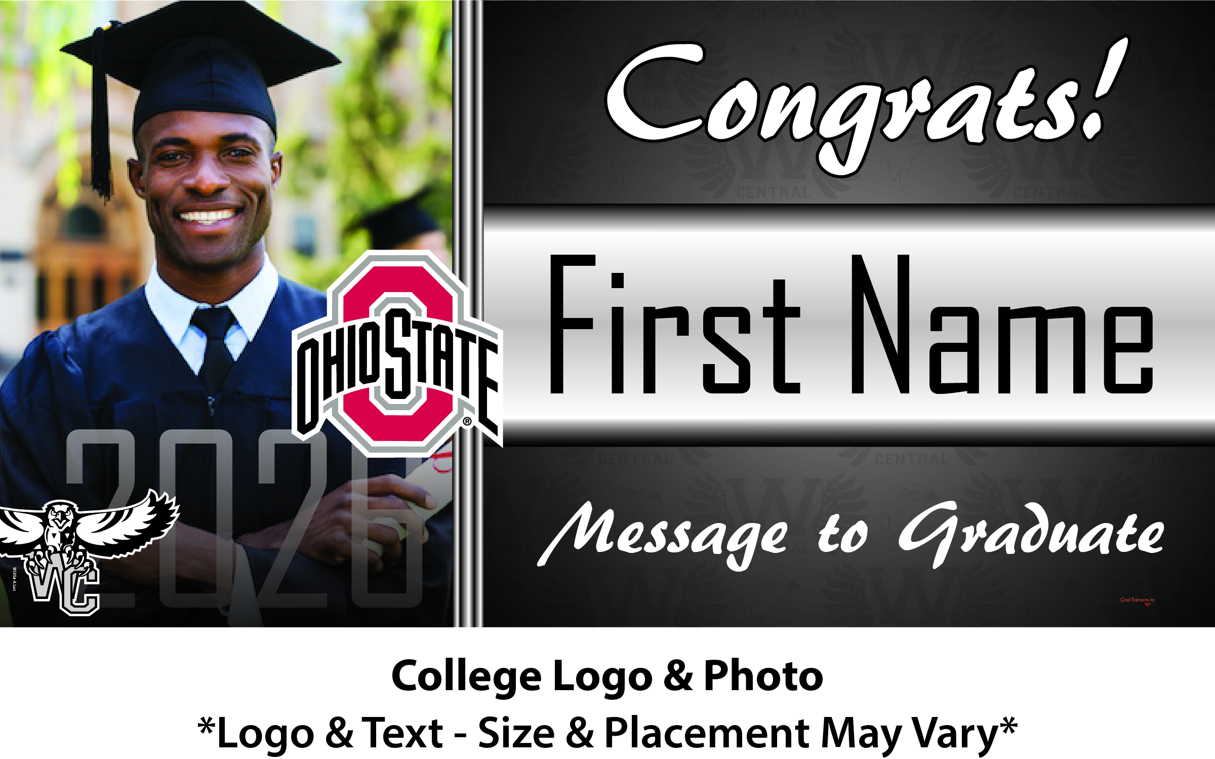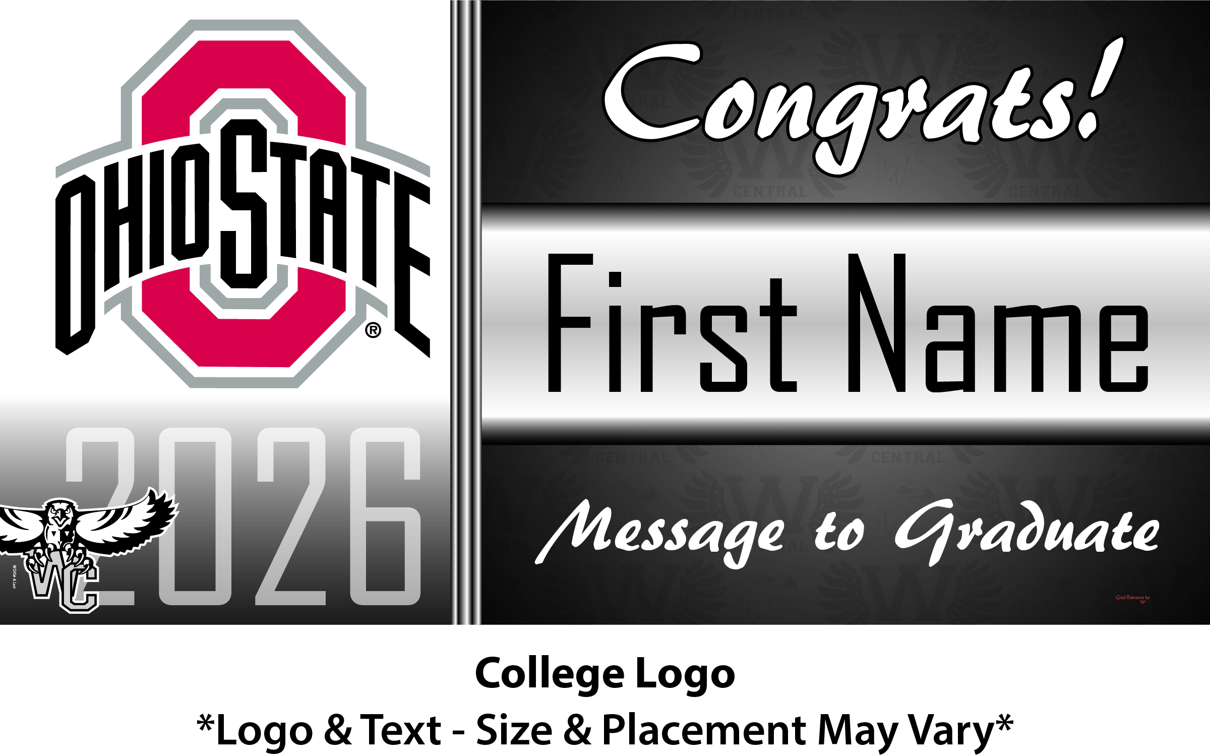 Banner Size: 5 ft. wide x 2.5 ft high (approximately 62 in x 32 in)
